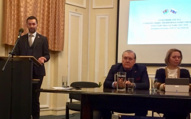 Руководитель Аппарата Общественной палаты Союзного государства Александр Ольшевский выступил перед собравшимися с подробным докладом о работе ОПСГ в 2017 году. В частности, он отметил активную международную деятельность, проводимую Алексеем Журавлевым и его коллегами по партии "РОДИНА" и Конгрессу русских общин.