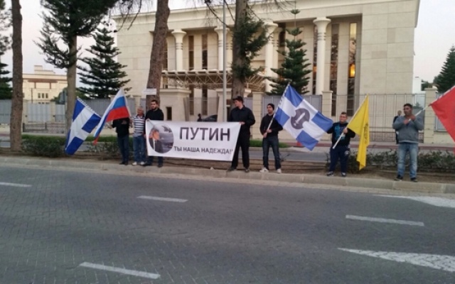 "Путин - наша надежда!" - под таким лозунгом у посольства РФ на Кипре состоялась акция солидарности греков-киприотов с Россией и русским народом.