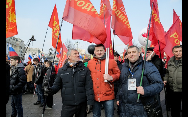 Колонну партии "РОДИНА" возглавил её председатель, депутат Госдумы Алексей Журавлёв. Вместе с ним выразили свой протест против "цветных" революций секретарь Политсовета, лидер столичный социал-патриотов Михаил Колчев, член Бюро, сопредседатель социально-патриотического клуба "СТАЛИНГРАД" Алексей Рылеев, идеолог партии, сопредседатель социально-патриотического клуба "СТАЛИНГРАД" Фёдор Бирюков, председатель Центральной контрольно-ревизионной комиссии Роман Лобзин, руководитель фракции "РОДИНА" в Мосгордуме Андрей Шибаев, председатель регионального отделения в Московской области Алексей Звягин, председатель регионального отделения в Крыму Антон Тицкий, председатель отделения в Севастополе Сергей Смольянинов, председатель регионального отделения в Республике Татарстан Айрат Ханипов, председатель Совета партии "РОДИНА" по вопросам разработки и совершенствования законодательства РФ, адвокат Янис Юкша.