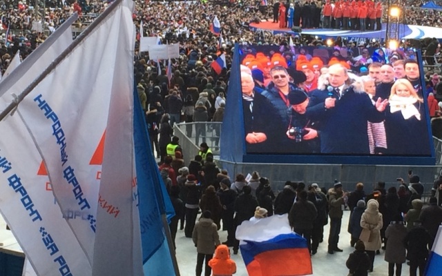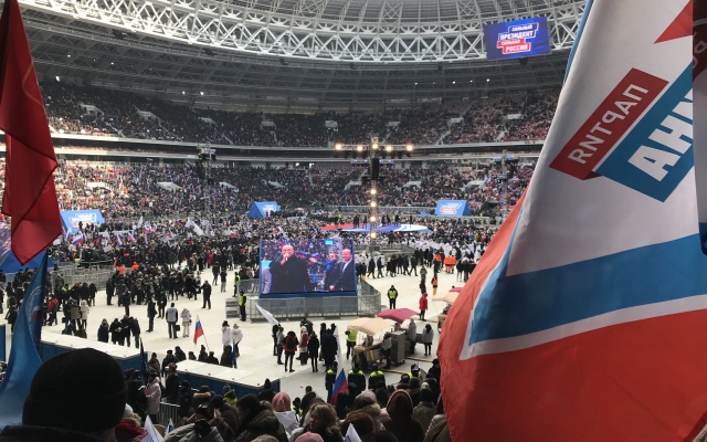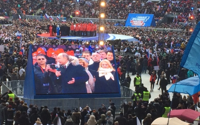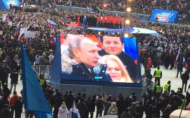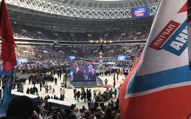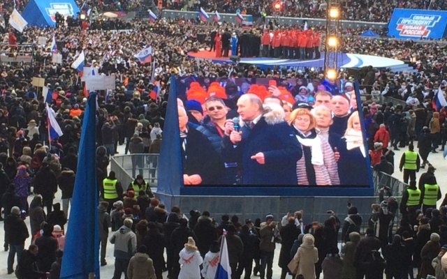 На митинге-концерте выступил Владимир Путин, который призвал россиян сделать все, чтобы XXI век прошел под знаком великих побед нашей страны.
