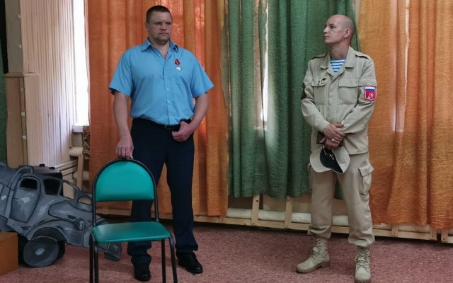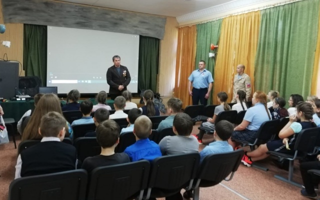 В качестве гостя на Урок мужества был приглашен ветеран чеченской войны Евгений Букин, награжденный Орденом мужества и полностью потерявший зрение в ходе боевых действий на Северном Кавказе. Ветеран рассказал детям о войне от первого лица, об участии в боевых действиях, о том, что пришлось пережить в годы войны и о своей жизни после нее. Дети были увлечены рассказами героя, задавали множество вопросов в ходе беседы, старались прочувствовать, каково это жить, будучи слепым.