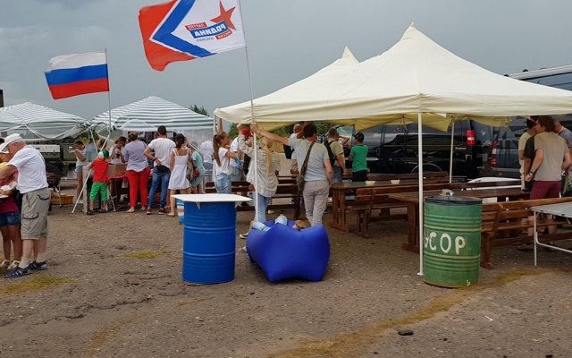 На площадке партии "РОДИНА" были выставлены старинные легендарные автомобили, а также подготовленные автомобили для путешествий. Кроме того, работала автобаня и полевая кухня.
