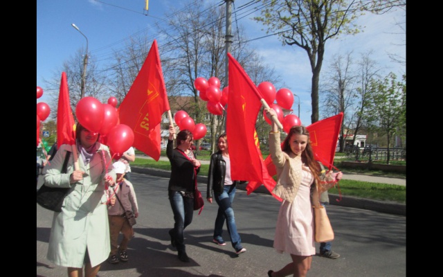 Наряду с людьми, участвующими во всех подобных мероприятиях, а также профсоюзными организациями и трудовыми коллективами, по площади прошли колонны байкеров, которые чем дальше, тем больше становятся патриотами, велосипедистов, и даже настоящий БТР.