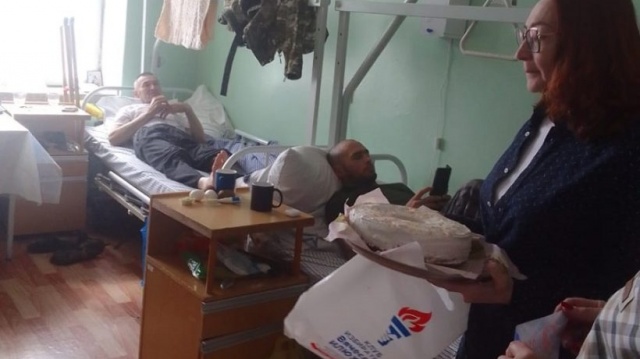 Помощники депутата Законодательного Собрания Новосибирской области от партии "РОДИНА" Вячеслава Илюхина вместе с волонтерами приехали в гости к раненым, проходящих лечение в военном госпитале в микрорайоне "Гвардейский".