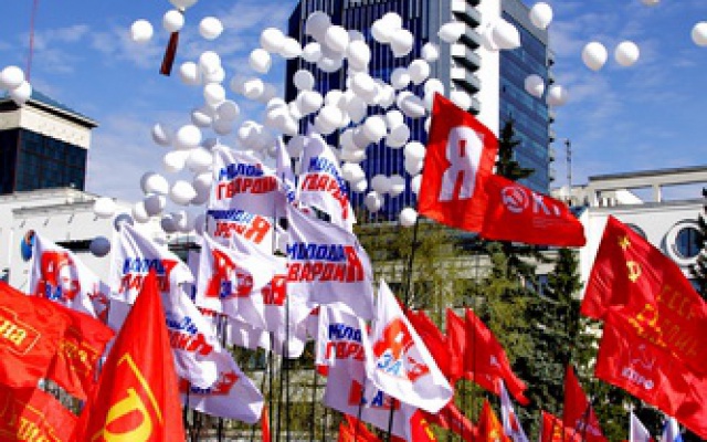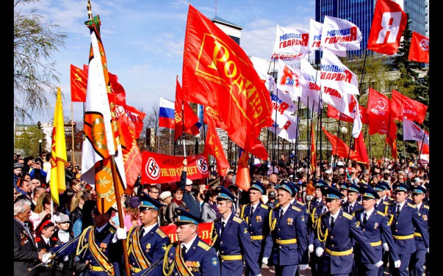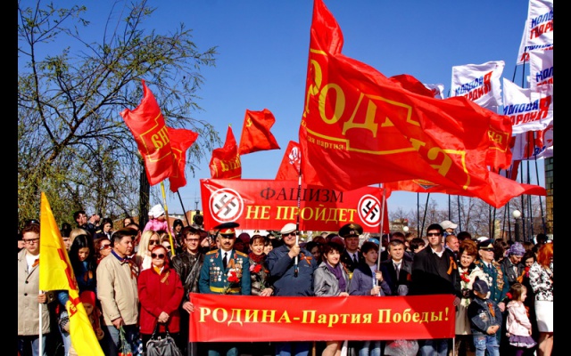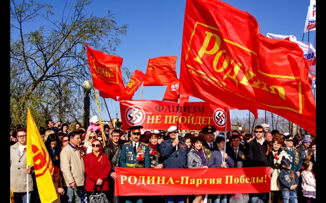 Челябинские родинцы в этом году как никогда были заметны своими знамёнами и транспарантами "Фашизм не пройдёт" и "Родина - партия Победы".